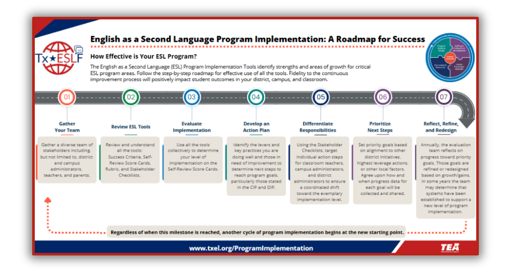 The TEA Emergent Bilingual Support team is continuously developing program implementation resources for school
